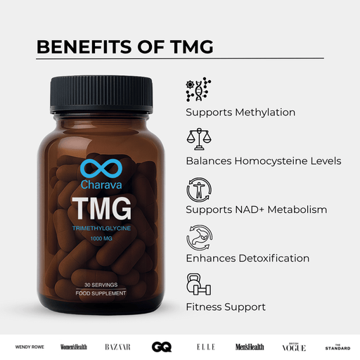 Charava UKOriginal price £19.99 - Original price £59.99Original price £19.99 - Original price £59.99Original price £39.99£19.99 - £53.99£19.99 - £53.99Current price £19.99| /Out of stockTrimethylglycine (TMG) is a naturally occurring compound found in foods like beets and spinach. Also known as betaine, TMG plays a vital role in me...